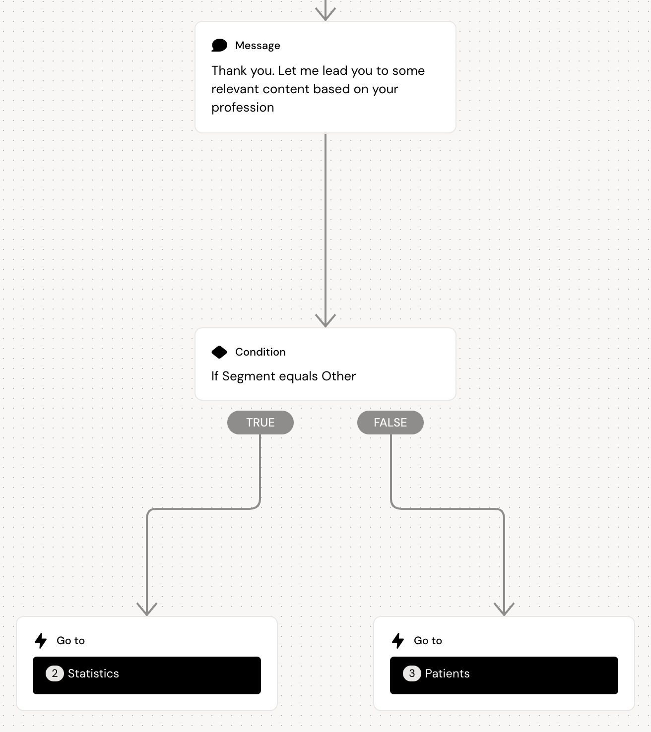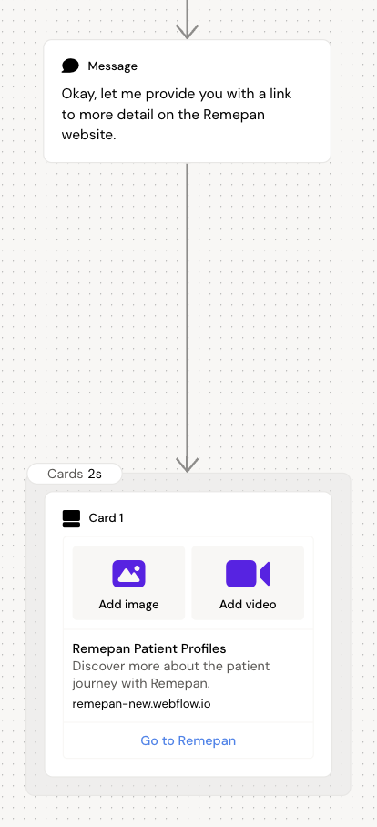 Users who replied Nurse, Surgeon or GP will be taken directly to this conversation, while the users who replied Other or didn’t answer the questions will be lead here after being presented with the second conversation (this was defined in the first conversation)