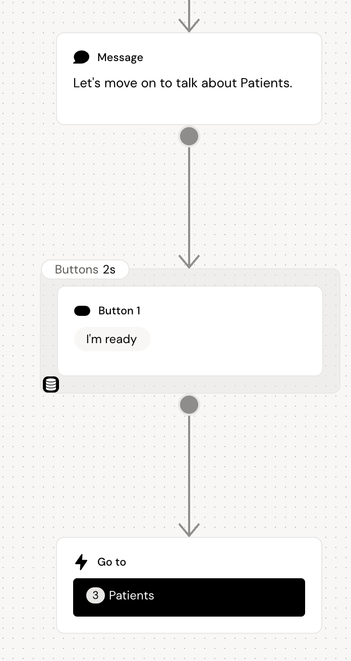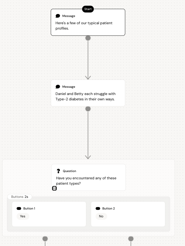 on the canvas and select ‘Message’ in the dropdown or by dragging the message node in from the left sidebar. Lets introduce the users to the conversation of patient profiles