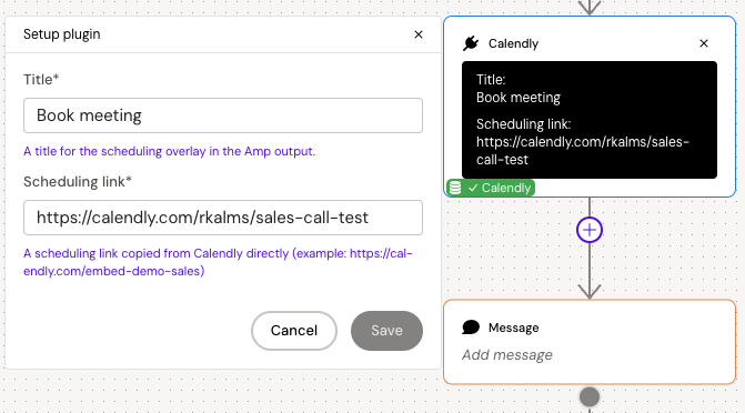 Amplify integrates with Calendly to make booking meetings directly from your Amp a breeze.