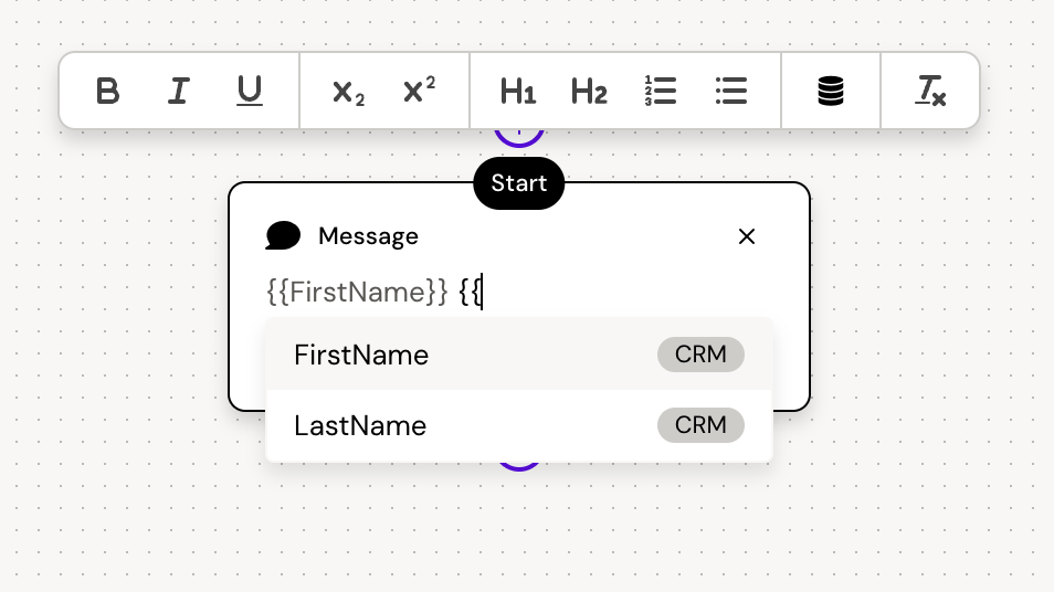 With that setup, you can personalise the messaging in your conversations by using the CRM account values directly in messages or condition nodes.