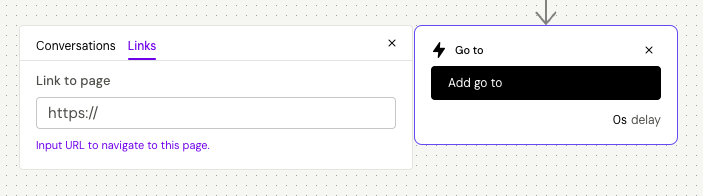 With this release it is possible to link the user to a different page on the current webpage and then continue the conversation from there. This can be done via the new “Links” tab in the popover of the Go To node.
